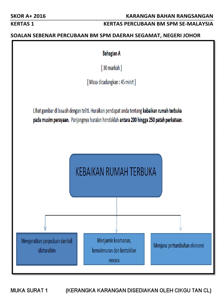 Kerangka Karangan Bergambar Percubaan Bm Spm Se Melaysia Pdf